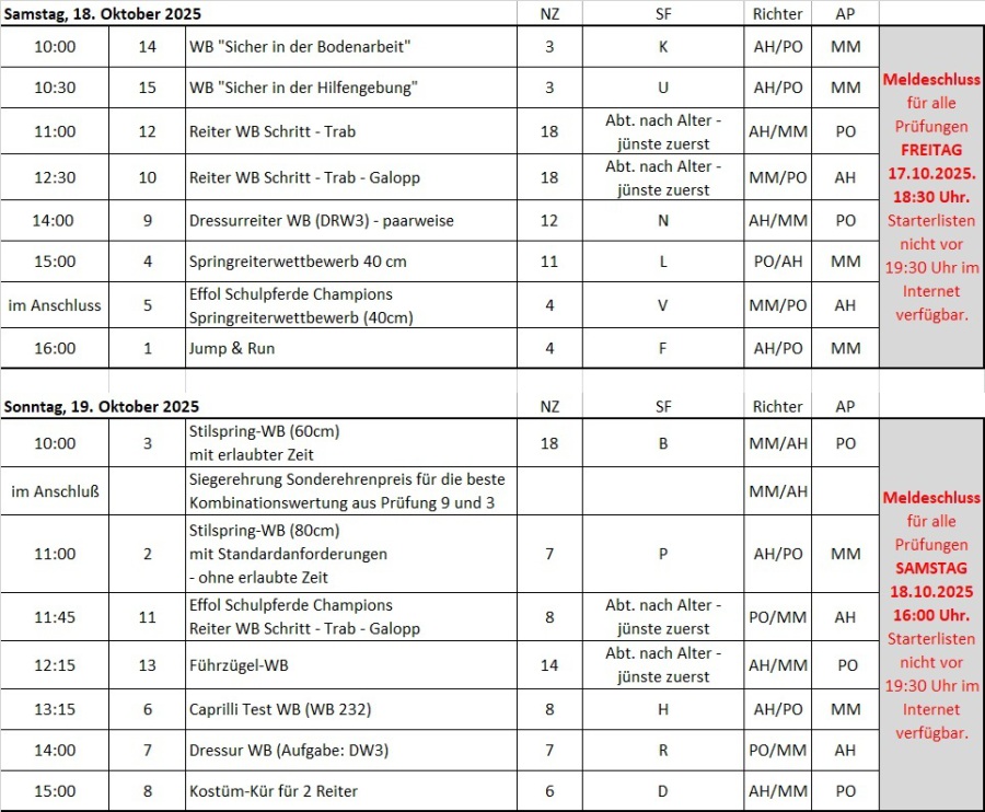Am Wochenende vom 18./19. Oktober haben wir uns wieder ein tolles Programm für die Gruppe der Turniereinsteiger ausgedacht. Diesmal auch mit 2 extra Prüfungen für die Effol Schulpferde Champions