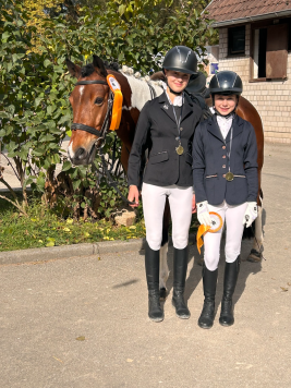Überhaupt lief es gut für die jugendlichen Reiterinnen und Reiter des Vereins, einige der Schul- und Privatpferde bekamen in unterschiedlichen Wettbewerben Schleifen angesteckt. Sophia Treutler landete in der Bodenarbeit mit Roosevelt auf Platz 1, Arwen Jäger mit Geronimo auf Platz 2. Platziert wurden im Reiterwettbewerb Schritt Trab Clara Wischnowksi mit Fine (Platz 2), Leni Eppler und Carlos Beck jeweils mit Bloody Mary (Platz 4) Cecilia Jost mit Zophia (Platz 4), Emma Schwarz mit Fine (Platz 5) und Celina Reuter mit Zophia (Platz 5). Sophia Treutler kam im Reiterwettbewerb Schritt-Trab-Galopp ebenfalls auf Platz 5. Im Reiterwettbewerb Schritt-Trab-Galopp, der speziell für Schulpferdreiter ausgeschrieben war, belegten Mia Lindemann und Friederike Güthenke jeweils den 2. Platz mit Bloody Mary. Anna Hensolt und Maya Kühnle nahmen teil am Springreiterwettbewerb 60 Zentimeter, Arwen Jäger landete im Springreiterwettbewerb 80 Zentimeter mit Geronimo auf Platz 4. Cornelius Güthenke mit Fine und Malou Maden mit Candice kamen im Führzügelwettbewerb auf Platz 3, Vincent Schwab mit Magnum Windsor auf Platz 4.