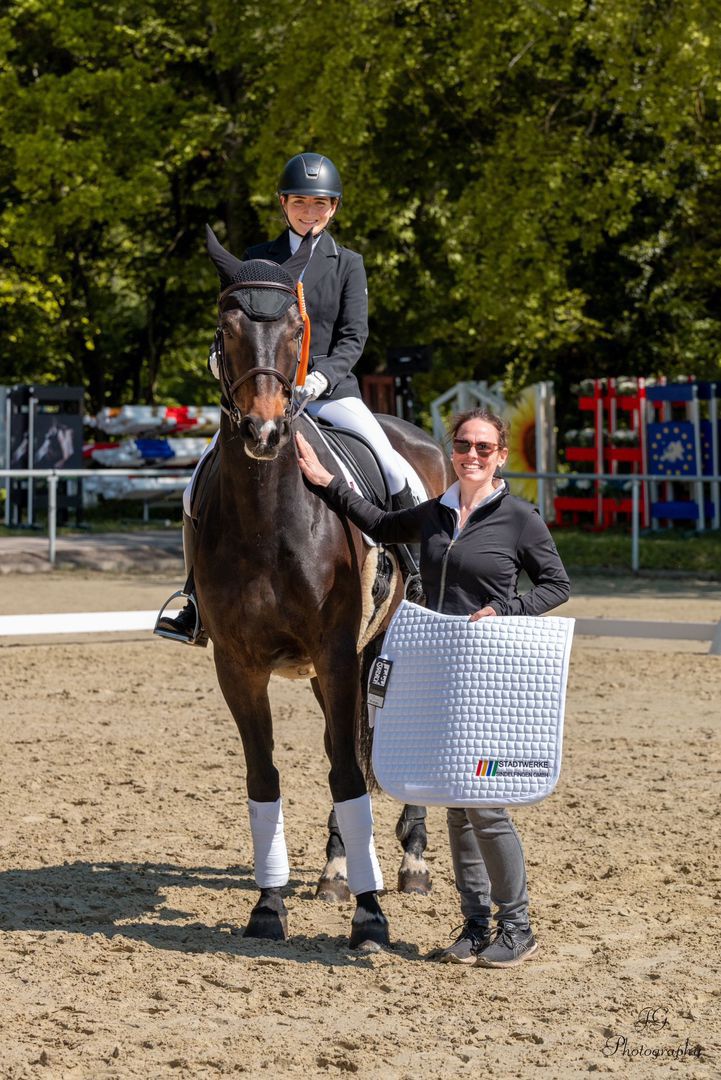 Für alle anderen Gäste gab es ein umfangreiches Essensangebot unter anderem mit einem Mittagessen aus dem Reiterstüble und unterschiedlichen Kuchen – und natürlich mit belegten Brötchen. „Die sind legendär“, weiß Mühlbauer – belegt von Reitlehrerin Mony Adam und ihrem Team gelten sie bei manchen als „die besten Brötchen, die es auf Reitturnieren zu kaufen gibt“. Die Vorsitzende lacht, von den letzten Gästen, die noch an der Absperrung lehnen, kommt zustimmendes Nicken. „Mony hängt sich echt immer voll rein“, sagt eine Frau, eine andere ergänzt, „auch die selbst gemachten Wraps waren echt der Hammer“. Über 100 Stück hat Adam zusammen den anderen Ehrenamtlichen gerollt, „viel Arbeit, macht aber total Spaß“, sagt sie. Simone Fritz, im Reiterverein verantwortlich für die Finanzen, ist zufrieden: „Der Andrang war groß, der Aufwand hat sich wirklich gelohnt“. Und sie ergänzt: Das Turnier sei eine große Gemeinschaftsleistung, denn „ohne die vielen Ehrenamtlichen aus dem Verein, die sich engagieren, könnten wir das alles nicht stemmen“. Zudem sei es auch in diesem Jahr wieder gelungen, viele Sponsoren für das Turnier zu begeistern, „so dass wir wirklich attraktive Preise ausloben konnten“.