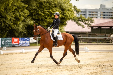 „First Choice hat es richtig gut gemacht“, sagte die 17-Jährige Jule Haunstetter, die nach ihrem letzten Wettbewerb zusammen mit ihren Eltern Nadine und Frank mit einer Tüte Pommes in der Hand in der Sonne steht. „Er ist sehr sensibel und findet manchmal Kleinigkeiten echt gruselig, aber von Wettbewerb zu Wettbewerb ist er entspannter geworden“. Für Jule, die seit 2017 Mitglied im Reiterverein Sindelfingen ist, ist es die zweite Saison, in der sie mit eigenem Pferd auf Turnieren startet. Vorher ist sie viele Jahre auf den Schulpferden des Vereins geritten, „von unserem früheren Reitlehrer Herr Hagedorn habe ich viel gelernt“, meint sie.